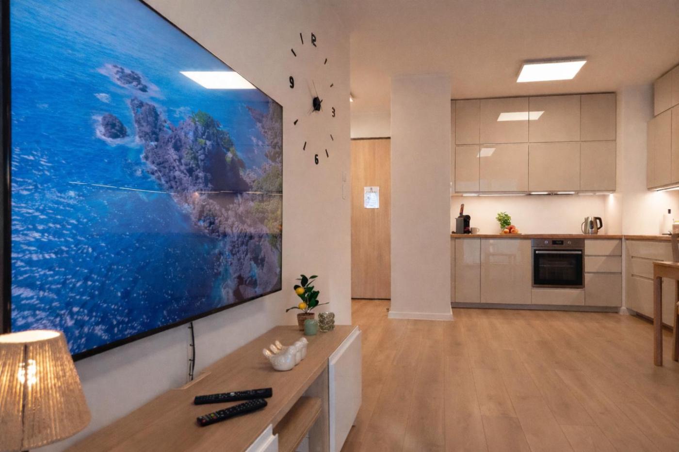 W apartamencie z 1 sypialnią zapewniono salon z telewizorem z płaskim ekranem, aneks kuchenny z pełnym wyposażeniem oraz łazienkę (1).