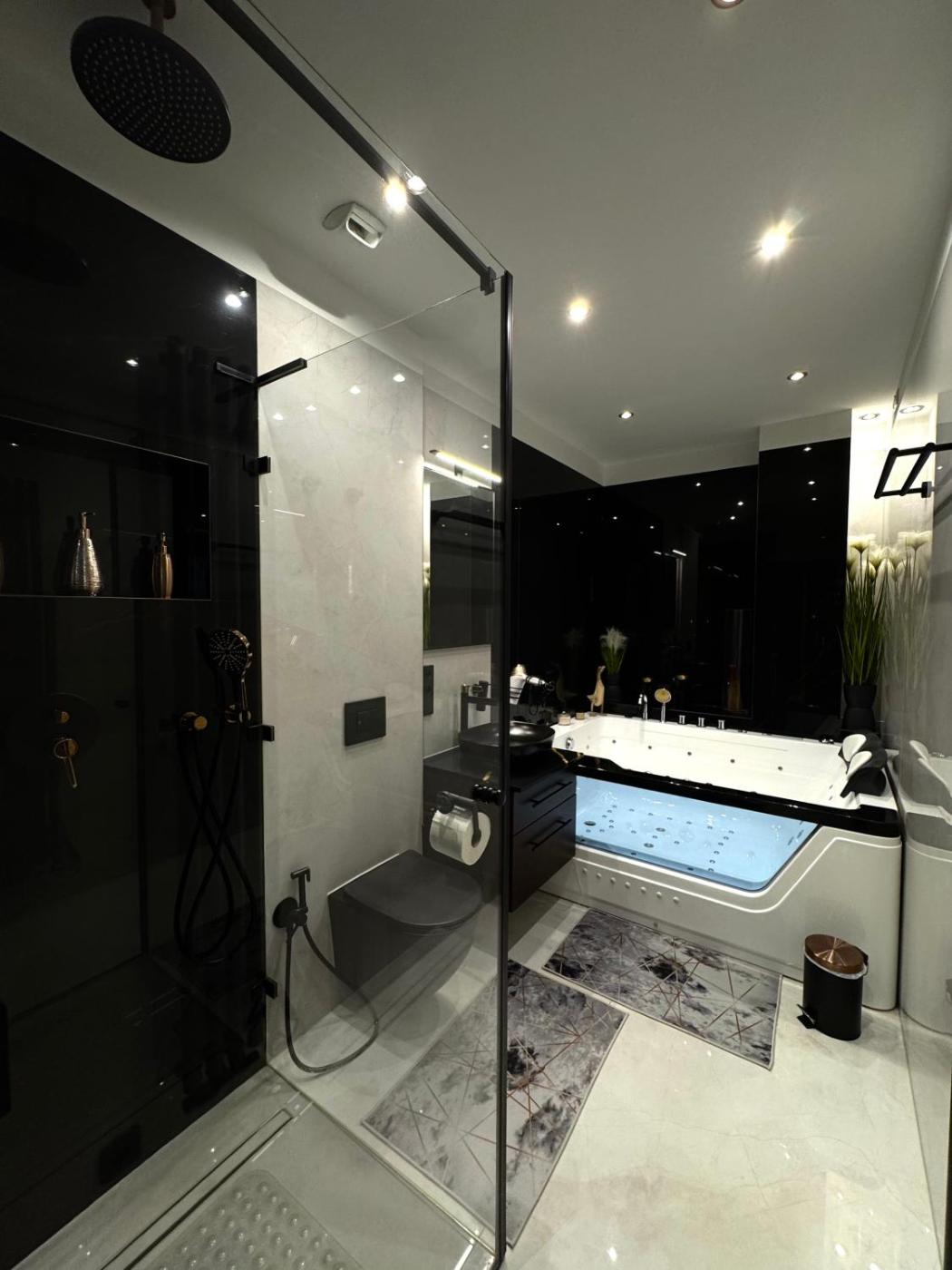 Apartament z 1 sypialnią. This apartments standout feature is the hot tub. Featuring a private entrance, this air-conditioned apartment is comprised of 1 living room, 1 separate bedroom and 2 bathrooms with a walk-in shower and a bath. In the kitchen, guests will find a stovetop, a refrigerator, a dishwasher and kitchenware. The spacious apartment offers a washing machine, soundproof walls, a tea and coffee maker, a flat-screen TV with streaming services, as well as sea views. The unit offers 3 beds. Apartament - 5 osobowy. Powierzchnia pokoju ok.: 108 mkw.