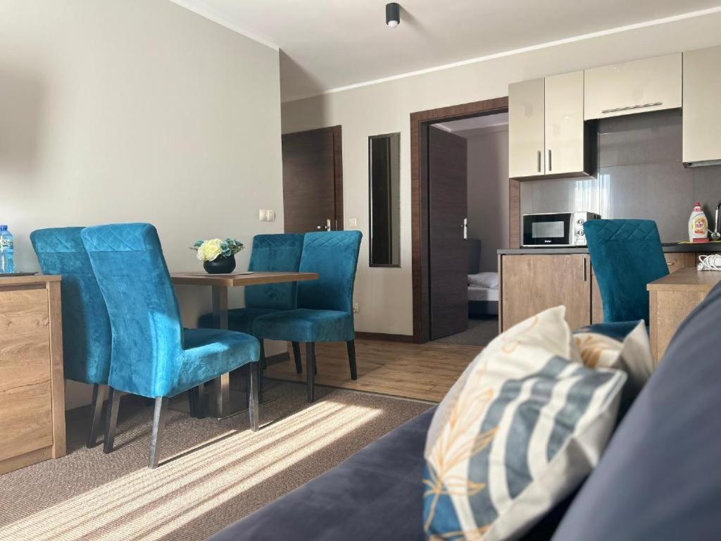 Apartament Rodzinny z 1 sypialnią. This air-conditioned apartment is comprised of 1 living room, 1 separate bedroom and 1 bathroom with a shower. The fully equipped kitchenette has a refrigerator, kitchenware and a microwave. This apartment features a wardrobe, an electric kettle, a flat-screen TV and a terrace. The unit offers 3 beds. Apartament - 4 osobowy. Powierzchnia pokoju ok.: 27 mkw. ;